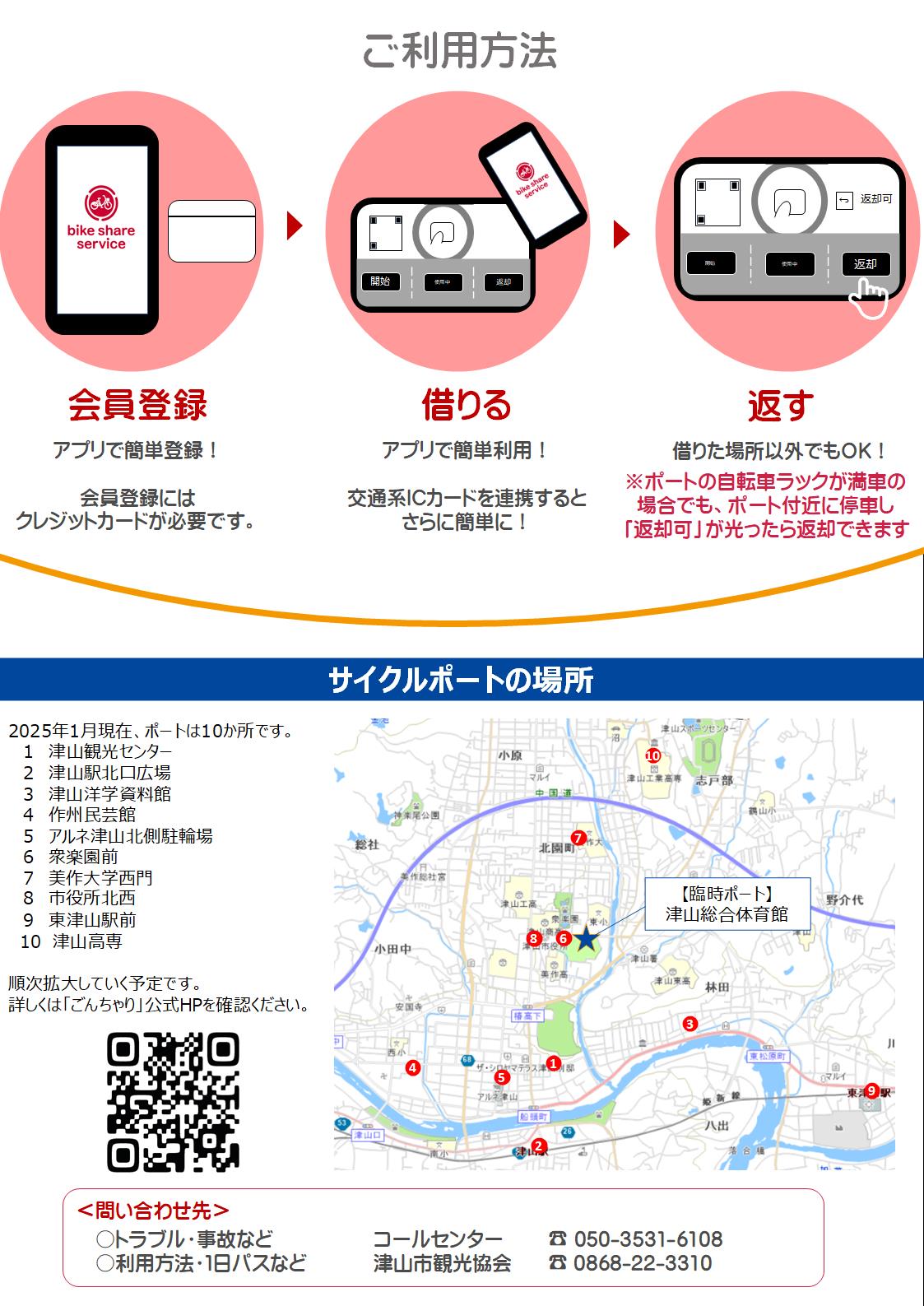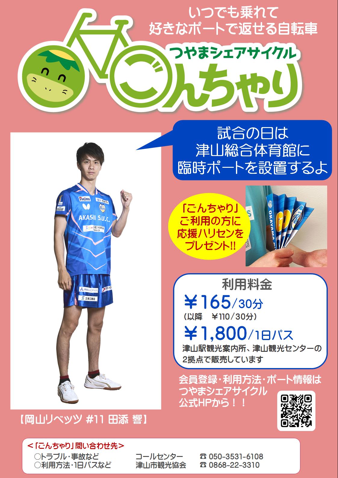 津山駅からシェアサイクル「ごんちゃり」に乗って、リベッツを応援しに行こう!