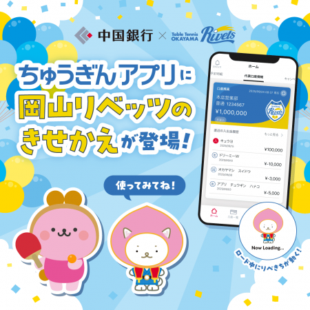 ちゅうぎんアプリに岡山リベッツ専用のきせかえが登場