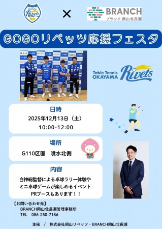 また、岡山リベッツのPRブースも設置いたしますので、ぜひお立ち寄りください。